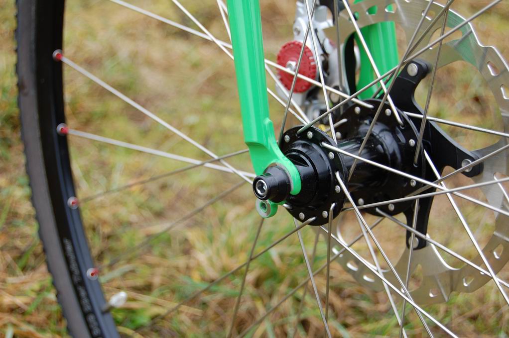 tief angebracht, dadurch kommen die Streben der Scheibenbremse nicht ins